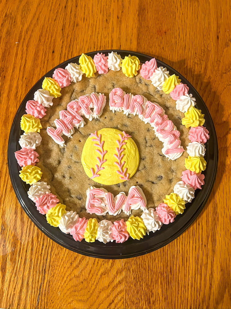 Double Layer Option Available! Love extra frosting and a taller cake? Our 10-inch and half sheet cookie cakes can be upgraded to a double layer with a buttercream filling between the cookies.